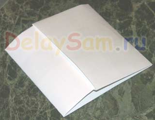 После этого сгибаем бумагу в направлении перпендикулярном предыдущим сгибам. Так мы формируем обратную сторону конверта и его клапаны.