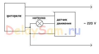 Схема включения фотореле и инфракрасного датчика движения приведена на рисунке.