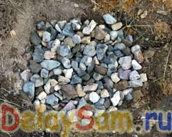 Если использовать жесткую дренажную трубу, то конечно, не надо ее ничем засыпать. Обратная засыпка скважины щебнем имеет целью сохранить форму скважины, служит своего рода обсадной трубой. Водопроницаемость щебня (не самих камешков, а структуры) – абсолютная, вода через щебень уходит мгновенно. Поэтому аккуратно засыпаем скважину промытым щебнем до самого верха.