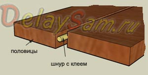 Потребуется достаточно длинное сверло и большое количество шкантов — круглых длинных деревянных палочек. Вместо шкантов можно применить отрезки стальной проволоки большого диаметра (6-8-10 мм).