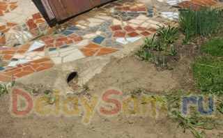 Именно так я и рассуждал, решая проблему водослива на своей даче. Участок имеет небольшой уклон по диагонали плана участка. После строительства дома, хозблока и мощения двора образовалась некая «дамба», которая начала держать воду выше строений. Эта вода частично переливалась по двору, частично застаивалась и медленно дренировалась в грунт, одновременно пропитывая грунт вокруг фундаментов. Пришлось срочно предпринять меря по модернизации отмостки по периметру строений. Теперь она не только собирала воду, но и отводила ее в сторону, туда где уровень ниже. Конечной точкой был участок газона. Однако и этот вариант оказался не совсем удачным, так как газон был выше по склону, чем дорожка, ведущая со двора в рекреационную зону ( беседка, пергола, бассейн). И при таянии снегов и после ливней, когда грунт газона насыщался влагой, вода текла поверх дорожки. Поэтому я решил сделать водоотвод дождевых вод, причем – открытый. Что бы он гармонировал с окружающим ландшафтом, я решил сделать его в виде каменной речки или ручья.