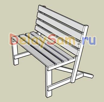 Материалом для такой садово – дачной лавочки может послужить практически любая доска, даже короткомеры и обрезки длиной буквально по полметра.
