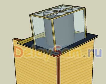 Северную стену «теплицы» лучше сделать глухой, дощатой, а изнутри оклеить ее обычной бытовой алюминиевой фольгой, той, что используется для выпечки. Тогда падающие мимо бочки солнечные лучи будут отражаться и освещать бочку с разных сторон. Лучше даже установить в «теплице» небольшое «зеркало – трюмо» так, что бы лучи солнца падали на бочку при любом угле ее освещения солнцем. Это тоже повысит температуру воды в бочке на 5-10 градусов.