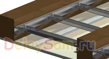 Т.к. поверхность пола должна быть ровной под горизонтальный уровень, а я мог сделать неровно, потому что не профессиональный строитель, купил в строительном магазине 3 профиля по 3 метра, идущие под навесные потолки и прибил их гвоздями к лагам выставив их все по уровню (рис.6). Это сделал для того чтобы после заливки пола раствором взять обыкновенную доску и проведя ребром по направляющим профиля снять остатки раствора и сделать поверхность горизонтальной. Т.е использовать профили как обычные маяки. Всю поверхность еще раз засыпал керамзитом, он даже перекрывал лаги, но чтобы засыпка была ниже направляющего профиля.