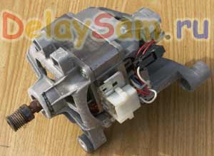 Мотор. Главный двигатель стиральной машины обычно имеет мощность около 200-300 Вт. На старых машинах стоят асинхронные моторы, в более поздних — коллекторные, щеточные. А на самых современных моделях — даже шаговые, но мне такие не попадались.