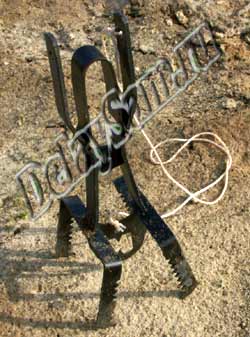 Вот попался мне специальный противокротовый капкан чешского производства. В принципе — вещь не плохая и должна была бы работать. Принцип работы прост. Захваты капкана (двойные ножницы) раздвигаются, а удерживает их перегородка. Капкан устанавливается в ход крота и присыпается рыхлой землей. Крот, начиная восстанавливать ход, неминуемо утыкается в перегородку, сдвигает ее и освобождает пружину капкана. Крота зажимает ножницами.