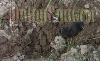 Когда крот, при обходе своих ходов (а он это делает по нескольку раз на дню), обнаружит свой закупоренный ход, он обязательно начнет его восстанавливать. При этом он неминуемо побеспокоит и датчик. Тот в свою очередь замкнет цепь и произойдет выстрел. Крот получит заряд дроби непосредственно в череп, и умрет быстро и надежно.