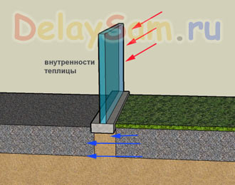 Зимой мы так же засыпаем снегом пространство вокруг теплицы на высоту всего цоколя, еще более утолщая слой теплоизоляции (рыхлый снег – отличный теплоизолятор). Таким образом, мы практически блокируем поступление холода сверху. В то же время тепло из недр земли беспрепятственно поступает под теплицу и промерзание грунта будет незначительным.