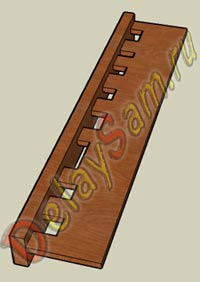 Напильники ни в коем случае нельзя хранить «навалом», общей кучей. При этом они трутся друг о друга и очень быстро тупятся. Поэтому будет лучше если вы сделаете для напильников простую полочку – кляссер, где каждому напильнику будет отведено свое место и они не будут соприкасаться друг с другом. Да и напильники будут на виду — не придется перебирать их все, выбирая нужный.