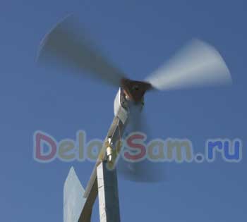 Все это чрезвычайно удешевляет ветрогенератор, появляется смысл его изготовления и использования. В частности, на свой я потратил примерно 3-4 часа времени (включая флюгер) и без учета времени полимеризации эпоксидной смолы. Затраты составили «ноль», так как делалось все «из мусора», т.е. подручных материалов.